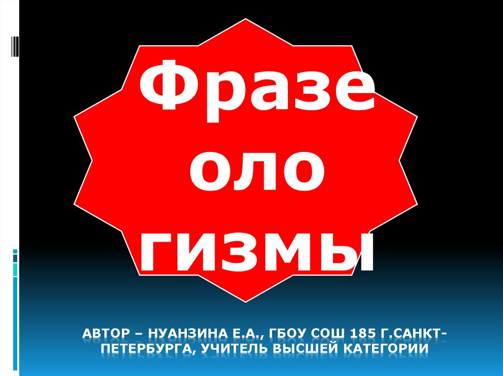 АВТОР – НУАНЗИНА Е.А., ГБОУ СОШ 185 Г.САНКТПЕТЕРБУРГА, УЧИТЕЛЬ ВЫСШЕЙ КАТЕГОРИИ