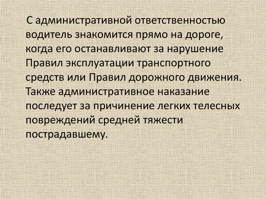 С административной ответственностьюводитель знакомится прямо на дороге,