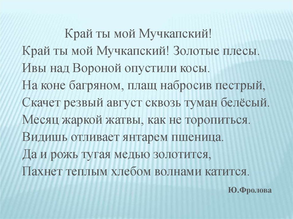 Край ты мой Мучкапский!Край ты мой Мучкапский! Золотые плесы.