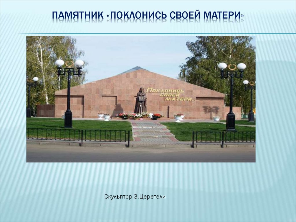 ПАМЯТНИК «ПОКЛОНИСЬ СВОЕЙ МАТЕРИ»Скульптор З.Церетели