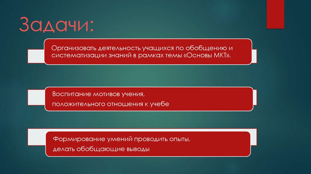 Задачи:Организовать деятельность учащихся по обобщению и