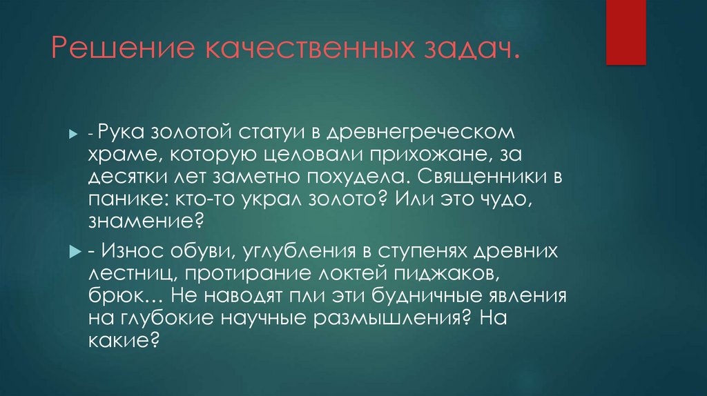 Решение качественных задач.золотой статуи в древнегреческом