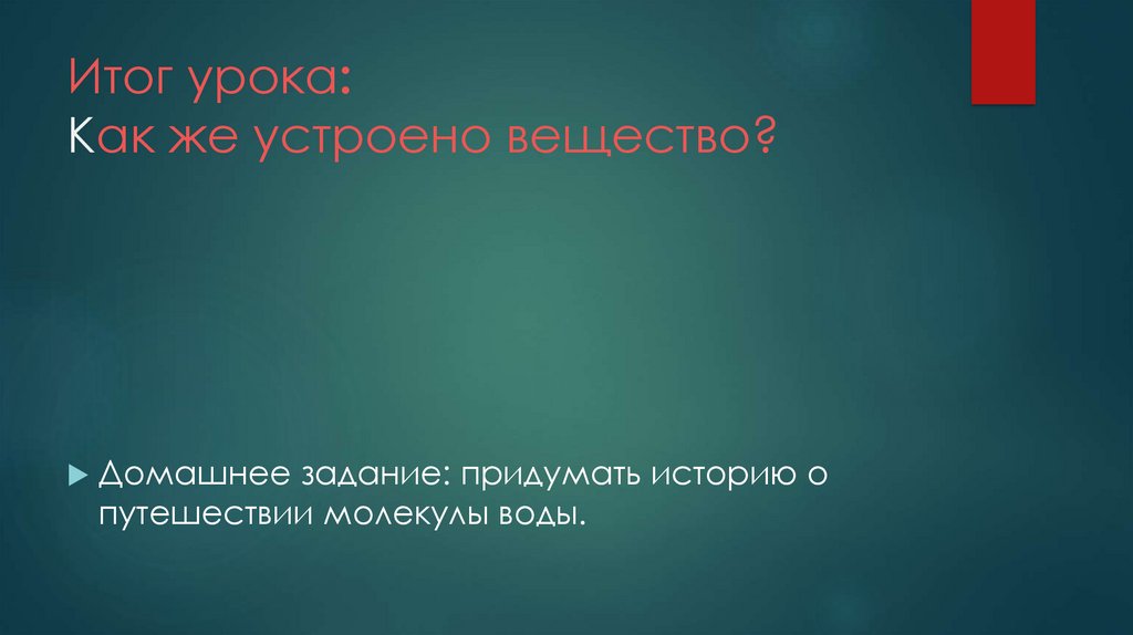 Итог урока:Как же устроено вещество?