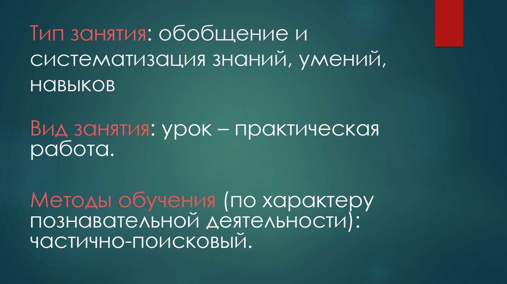Тип занятия: обобщение исистематизация знаний, умений,
