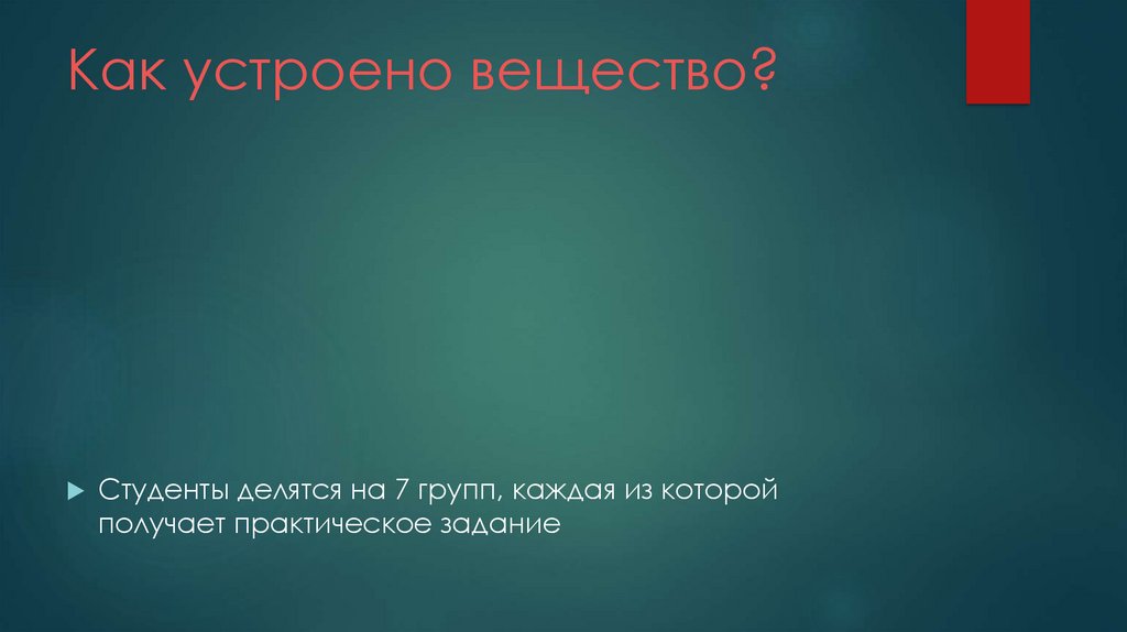 Как устроено вещество?Студенты делятся на 7 групп, каждая из которой