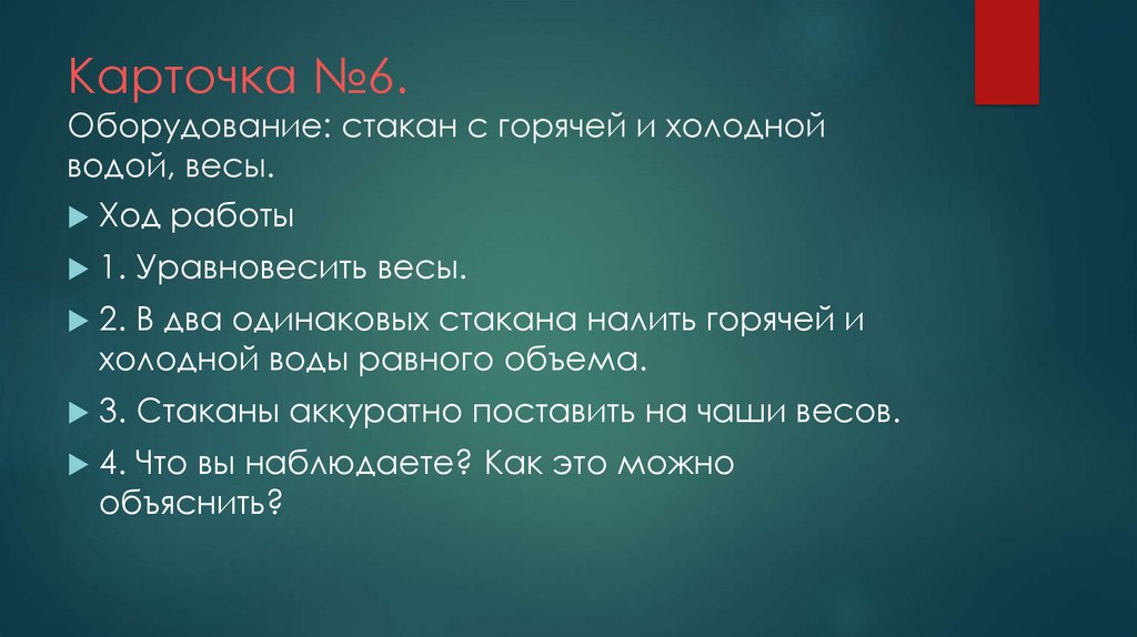 Карточка №6.Оборудование: стакан с горячей и холодной