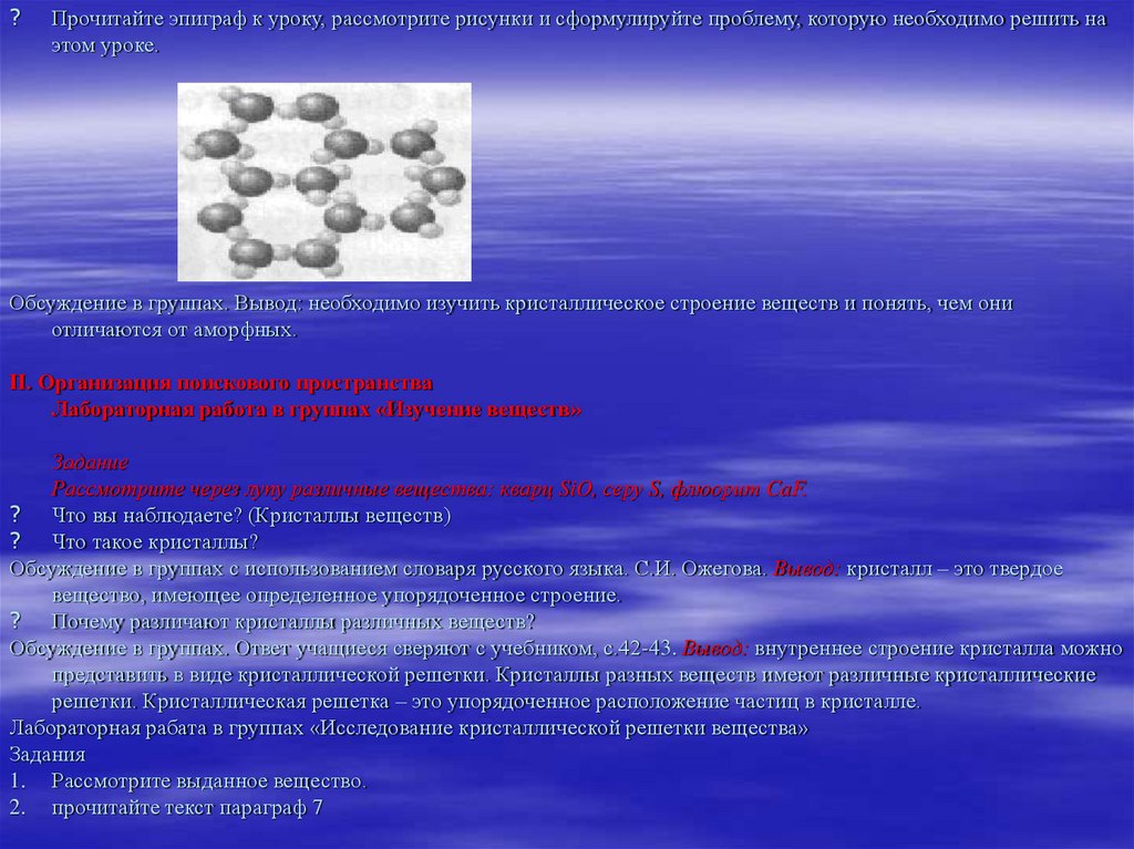 выводу: в кристаллических веществах атомы, молекулы или ионы