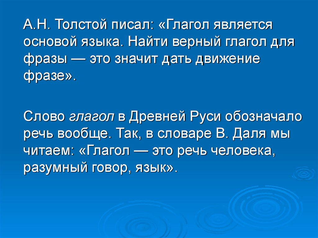 А.Н. Толстой писал: «Глагол являетсяосновой языка. Найти верный глагол для