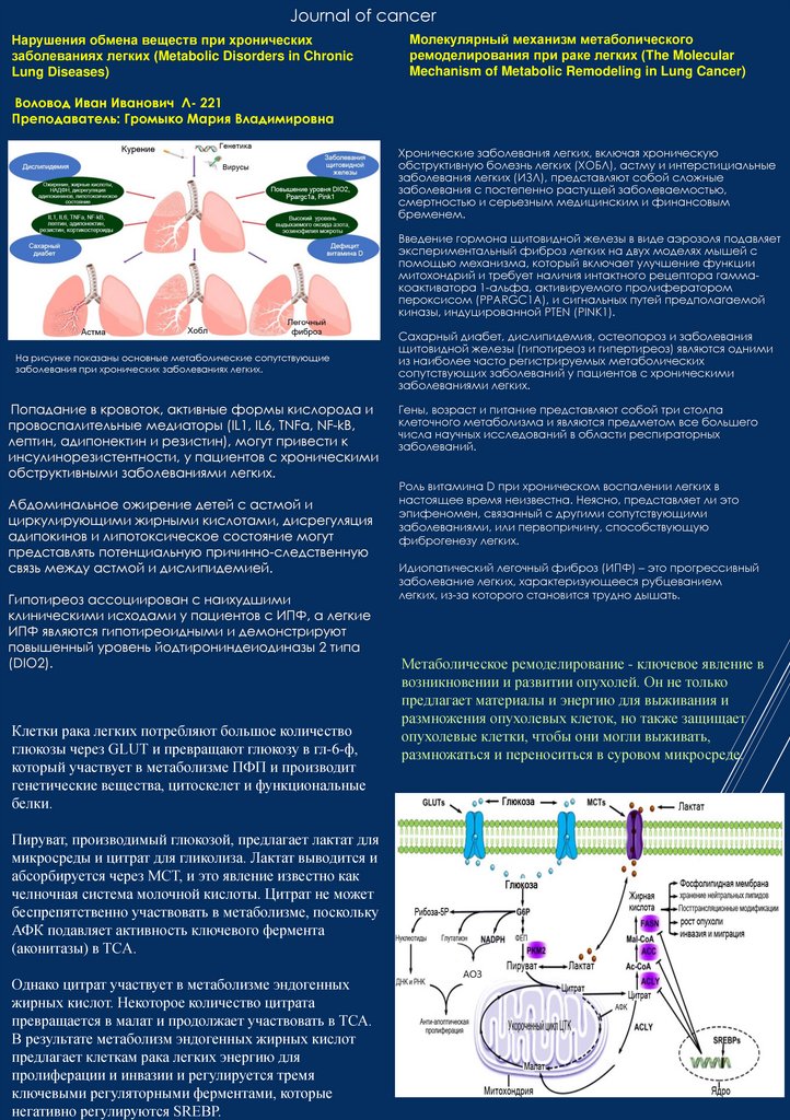 Journal of cancer. Нарушения обмена веществ при хронических заболеваниях легких (Metabolic Disorders in Chronic Lung Diseases)