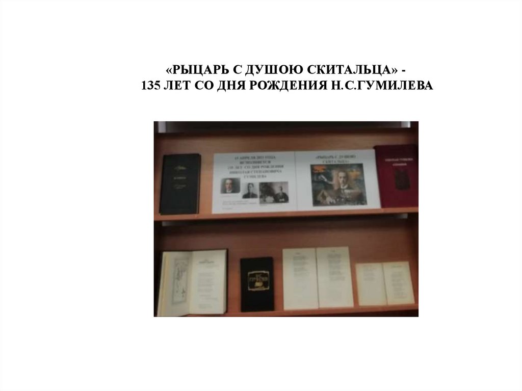 «РЫЦАРЬ С ДУШОЮ СКИТАЛЬЦА» 135 ЛЕТ СО ДНЯ РОЖДЕНИЯ Н.С.ГУМИЛЕВА