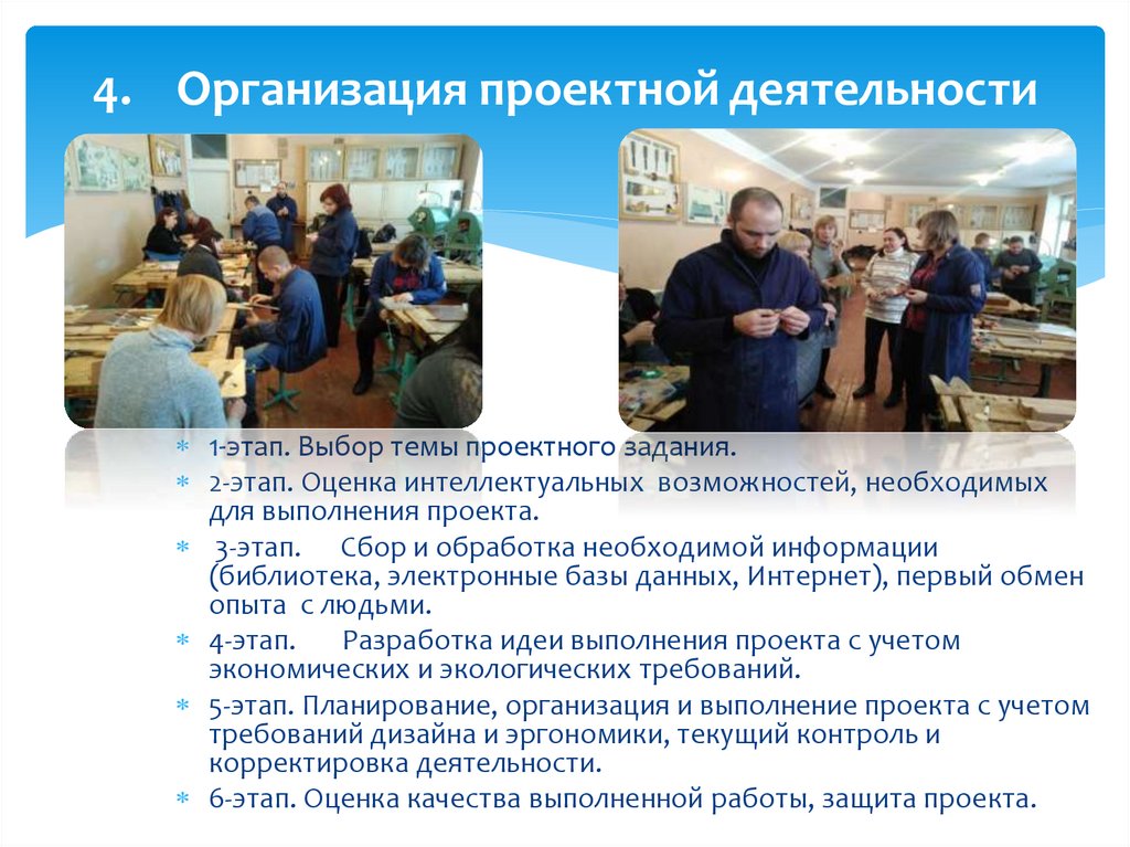4. Организация проектной деятельности1-этап. Выбор темы проектного задания.