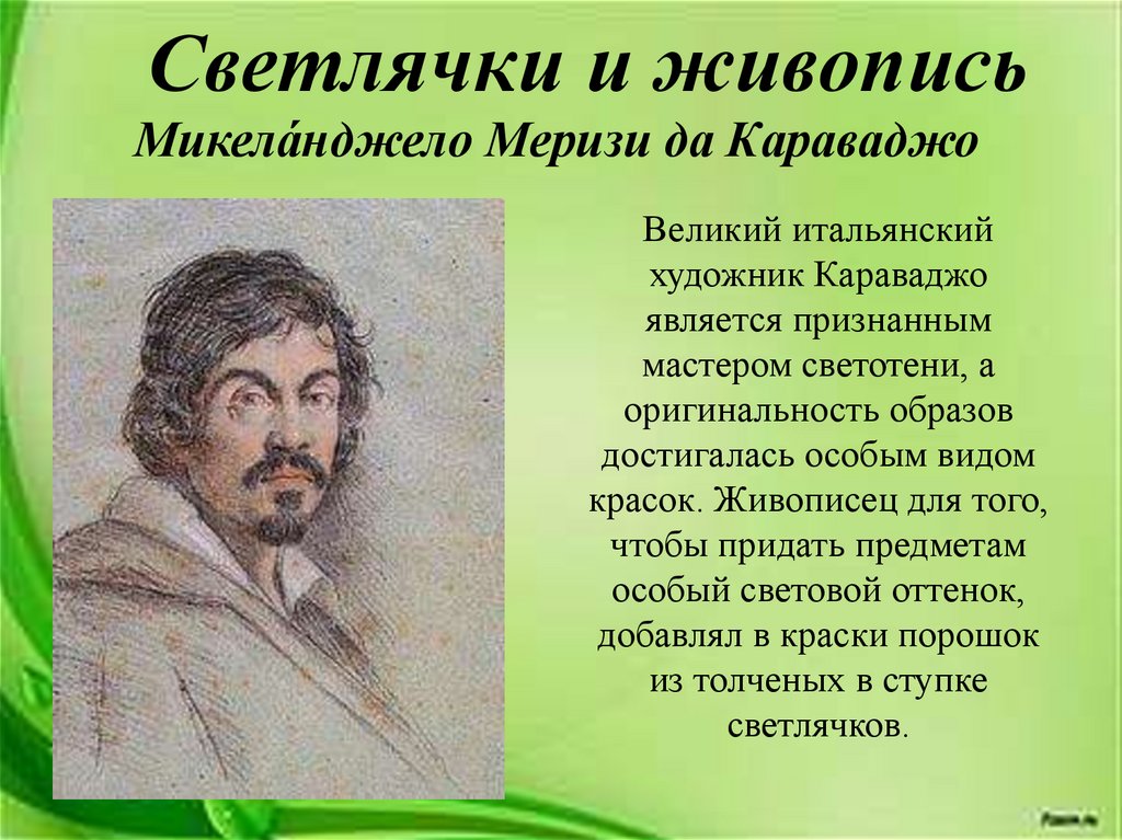 Светлячки и живописьМикела́нджело Меризи да Караваджо