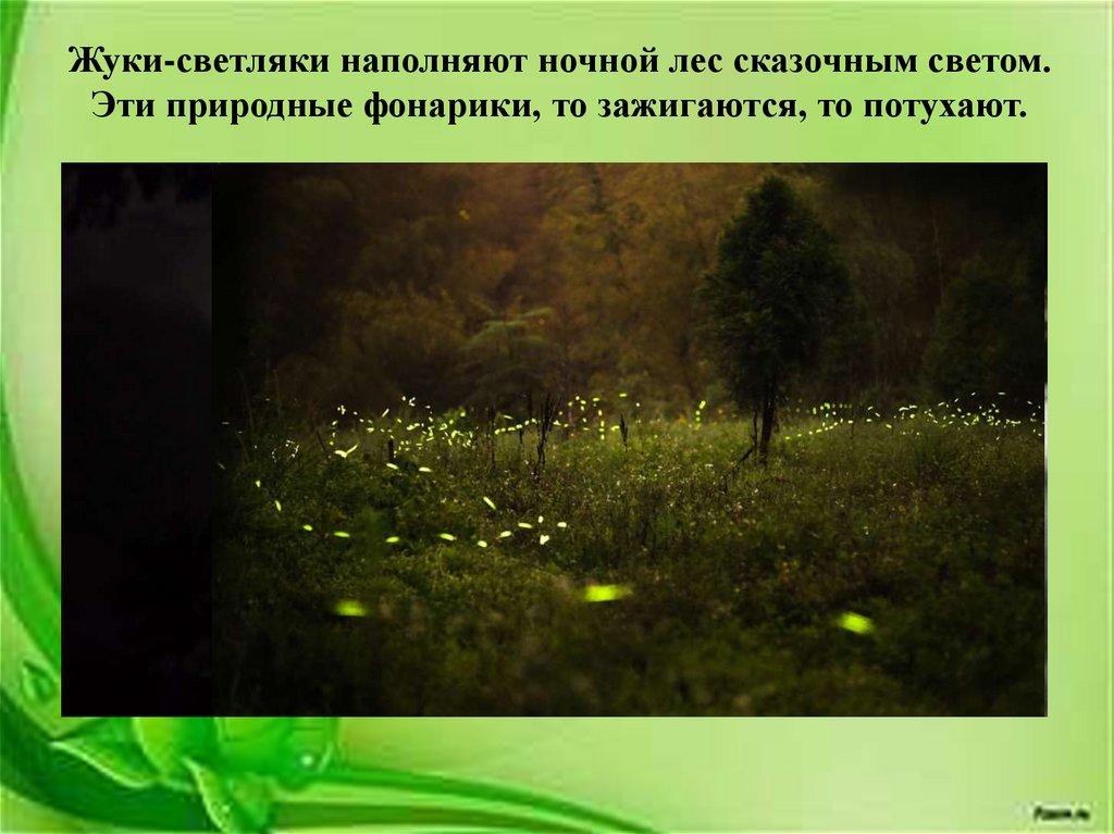 Жуки-светляки наполняют ночной лес сказочным светом.Эти природные фонарики, то зажигаются, то потухают.