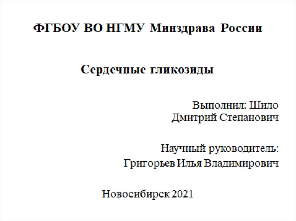 ФГБОУ ВО НГМУ МИНЗДРАВА РОССИИСердечные гликозиды