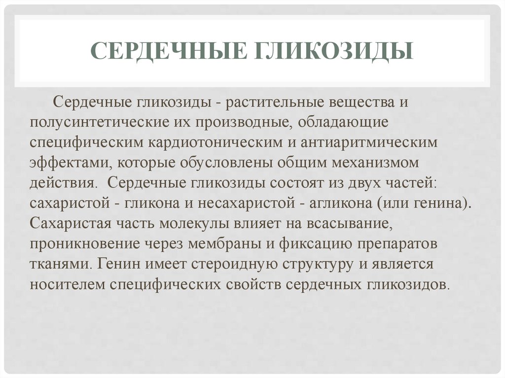 действия. Сердечные гликозиды состоят из двух частей: