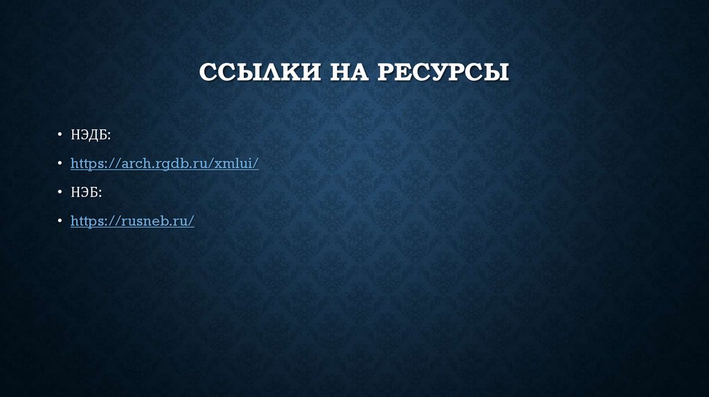 ССЫЛКИ НА РЕСУРСЫ• НЭДБ: