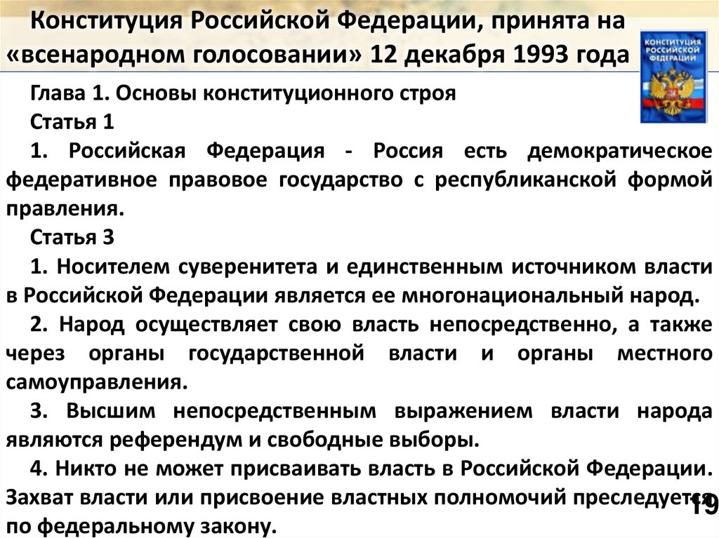 Конституция Российской Федерации, принята на«всенародном голосовании» 12 декабря 1993 года