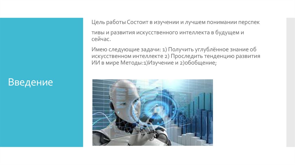 Цель работы Состоит в изучении и лучшем понимании перспективы и развития искусственного интеллекта в будущем и