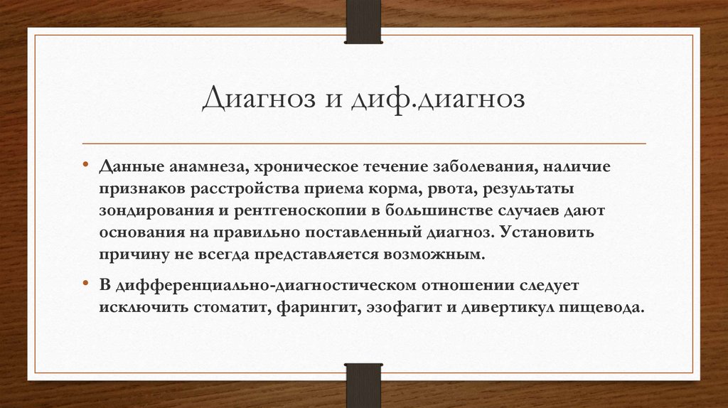 исключить стоматит, фарингит, эзофагит и дивертикул пищевода.