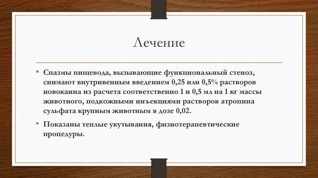 Лечение• Спазмы пищевода, вызывающие функциональный стеноз,