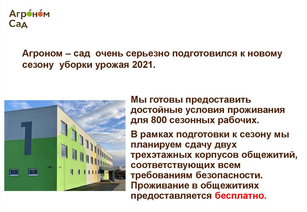 для 800 сезонных рабочих.