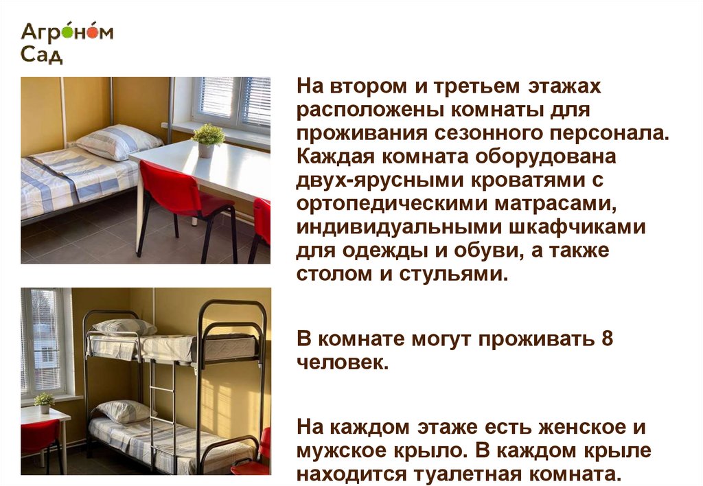 проживания сезонного персонала.