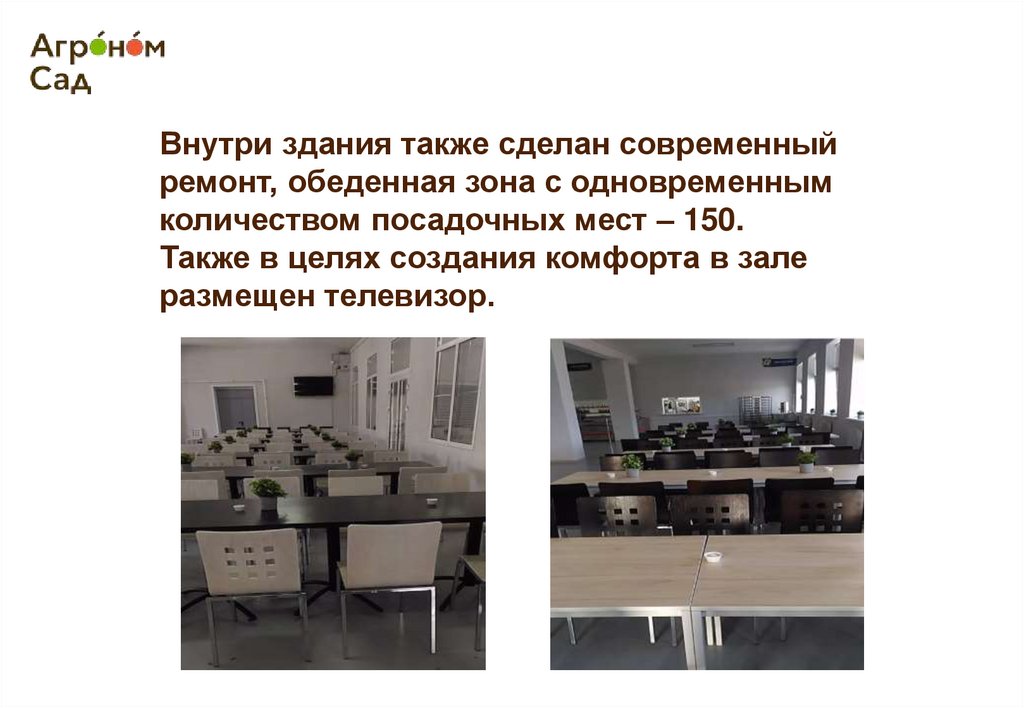 Внутри здания также сделан современныйремонт, обеденная зона с одновременным