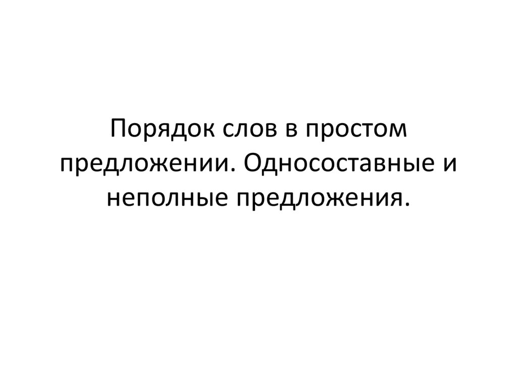 Порядок слов в простом предложении. Односоставные и неполные предложения