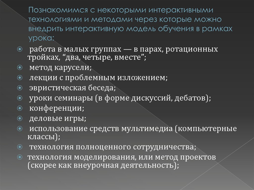работа в малых группах — в парах, ротационныхтройках, “два, четыре, вместе”;