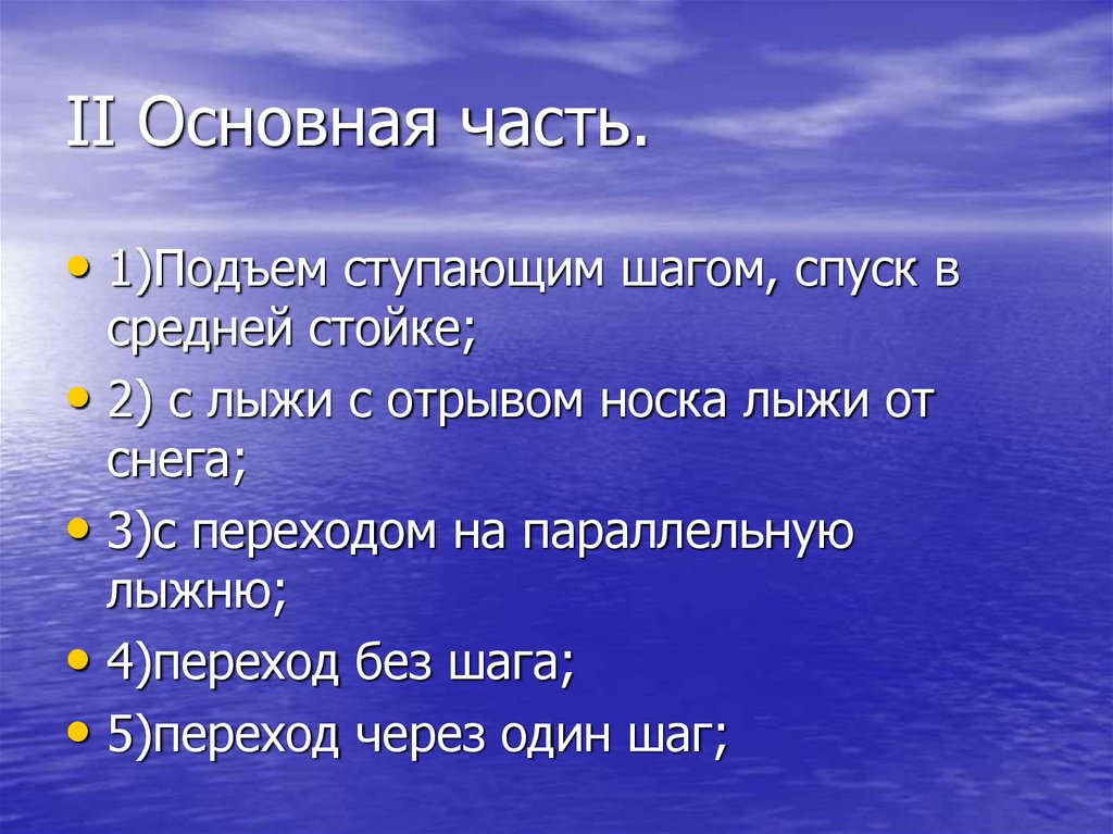 • 1)Подъем ступающим шагом, спуск всредней стойке;