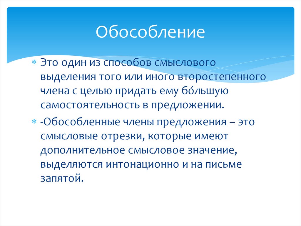 ОБОСОБЛЕННЫЙ. Стоящий особняком,