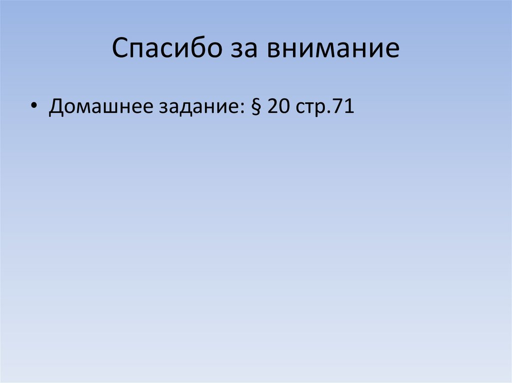 Спасибо за внимание• Домашнее задание: § 20 стр.71