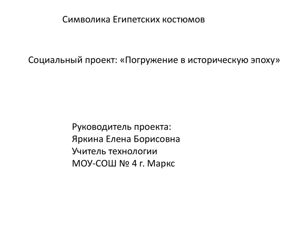 Символика Египетских костюмовСоциальный проект: «Погружение в историческую эпоху»