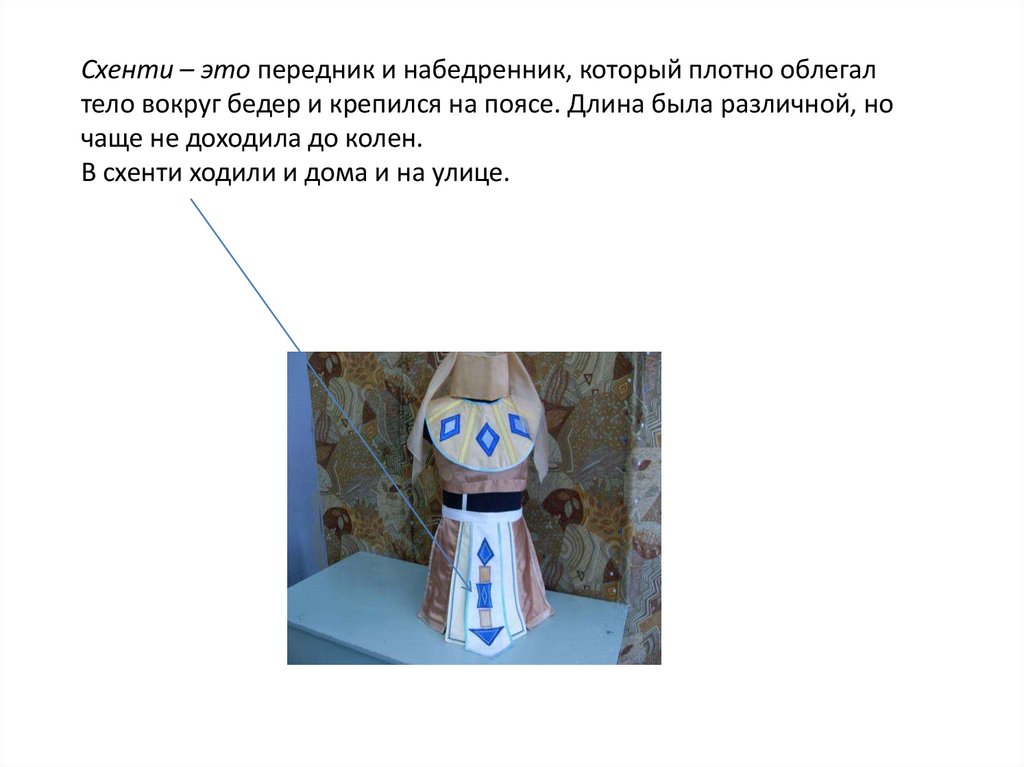 Схенти – это передник и набедренник, который плотно облегалтело вокруг бедер и крепился на поясе. Длина была различной, но