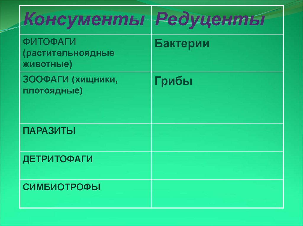 ФОТОАВТОТРОФЫ (РАСТЕНИЯ)ХЕМОАВТОТРОФЫ (БАКТЕРИИ)