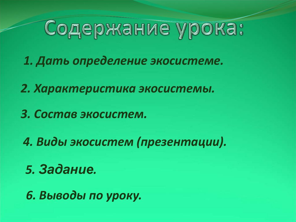 1. Дать определение экосистеме.2. Характеристика экосистемы.