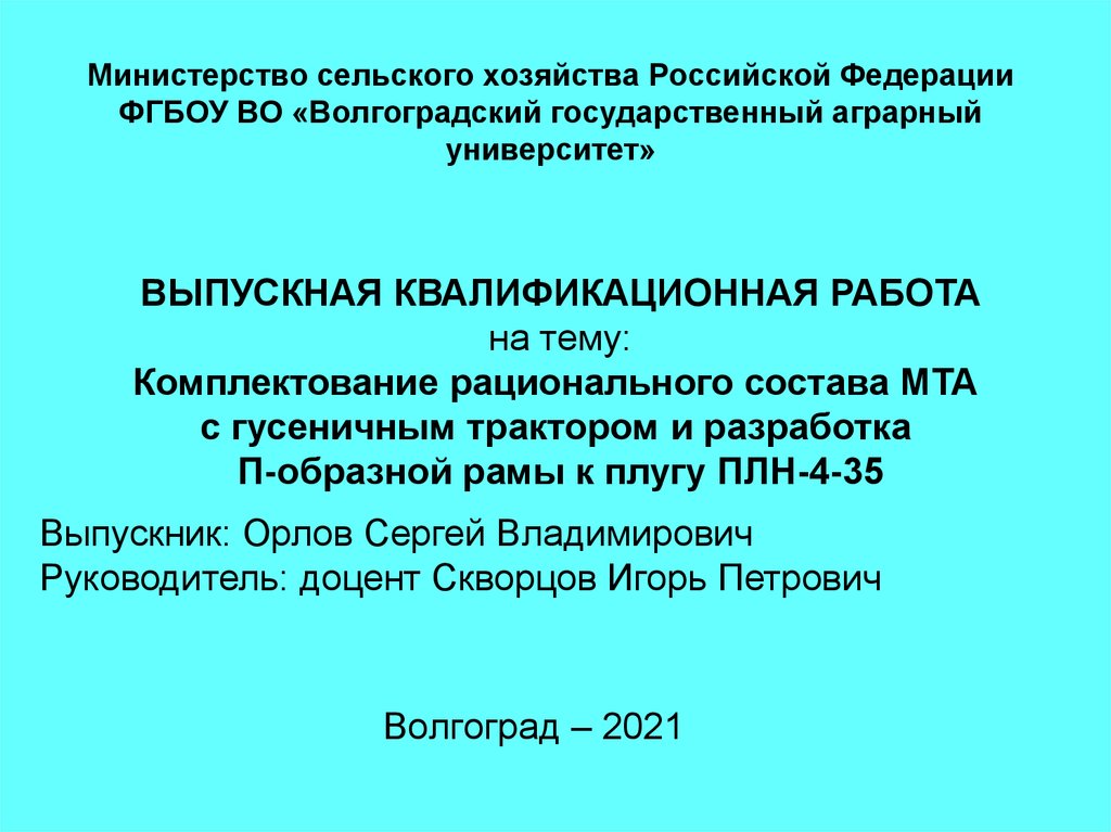 1. Министерство сельского хозяйства Российской Федерации ФГБОУ ВО «Волгоградский государственный аграрный университет»