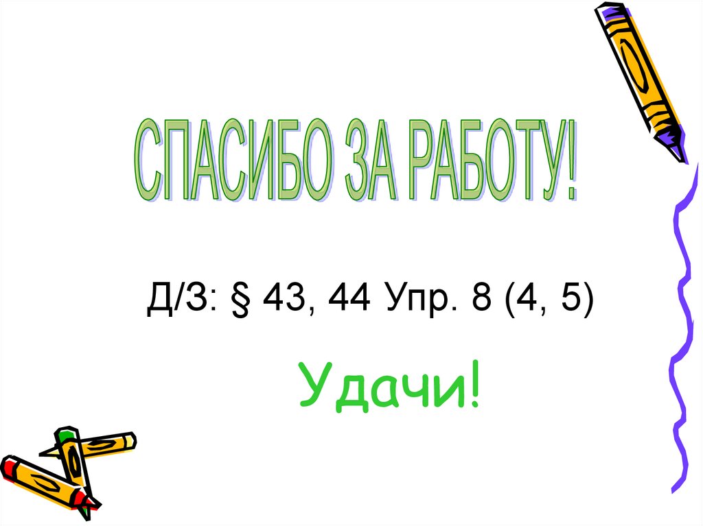 Д/З: § 43, 44 Упр. 8 (4, 5)Удачи!