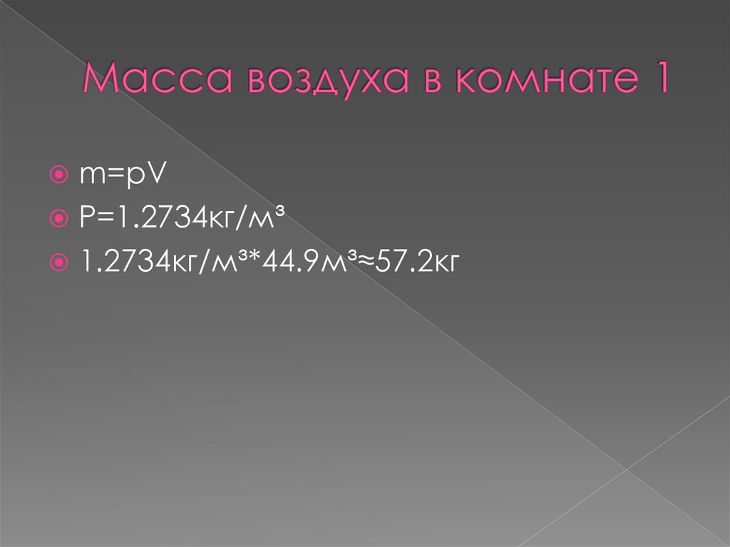 Масса воздуха в комнате1 равна 57.2кг