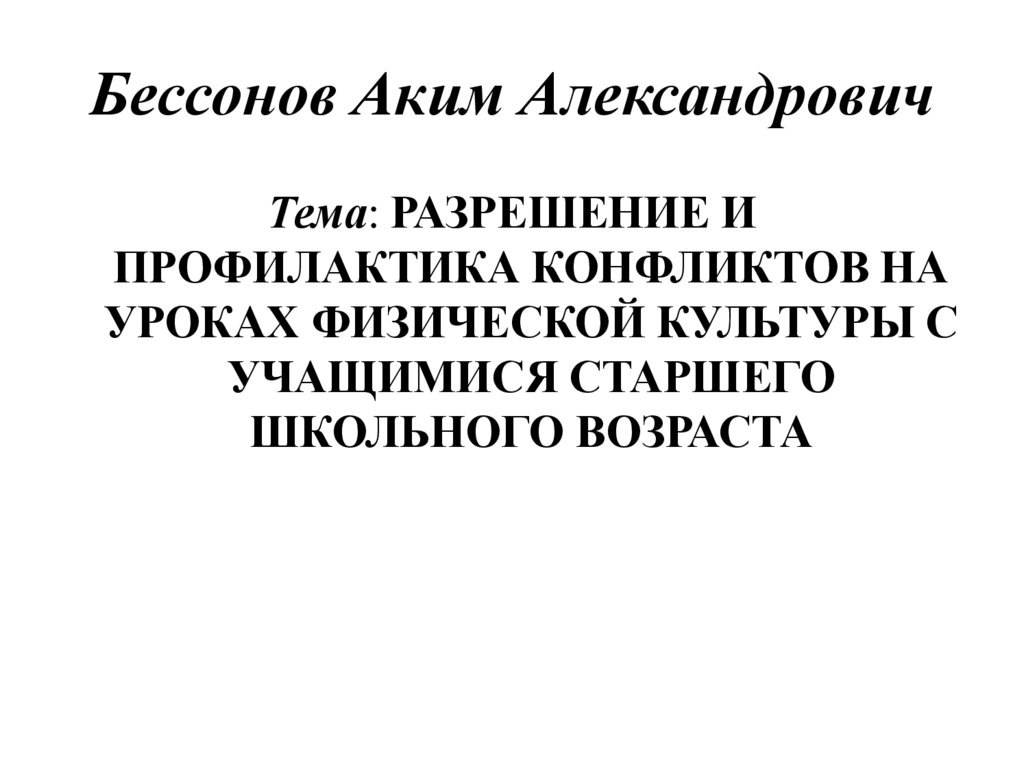 Разрешение и профилактика конфликтов на уроках физической культуры с учащимися старшего школьного возраста