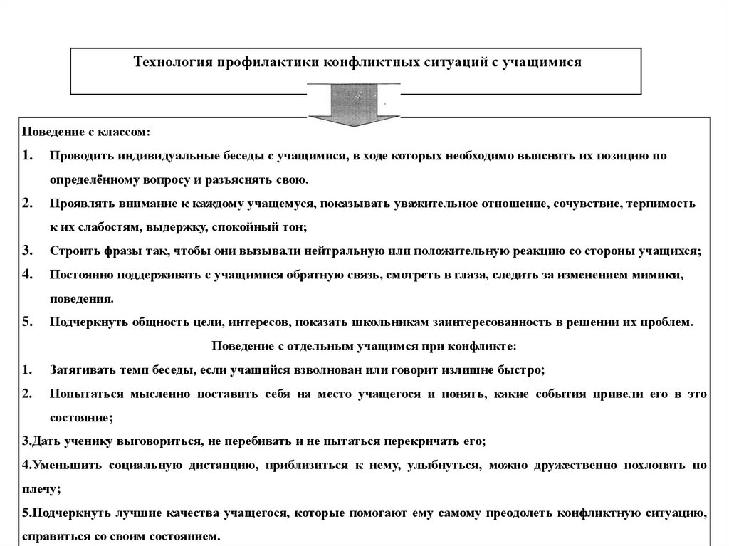Технология профилактики конфликтных ситуаций с учащимисяПоведение с классом: