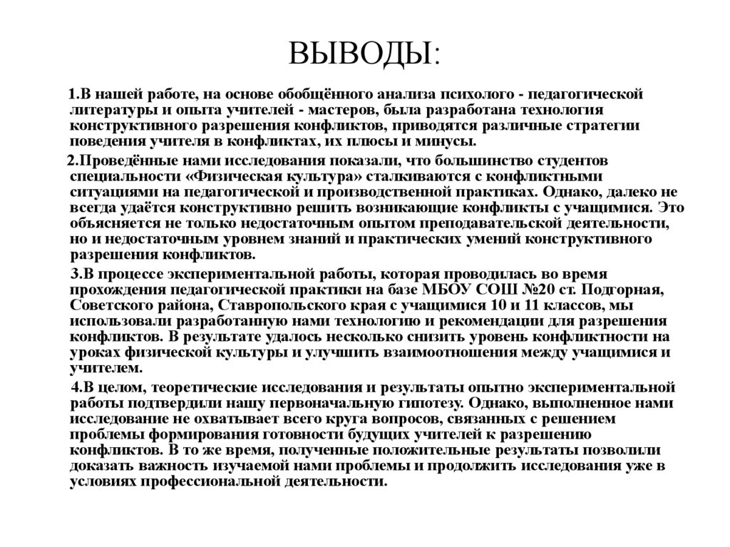 ВЫВОДЫ:1.В нашей работе, на основе обобщённого анализа психолого - педагогической