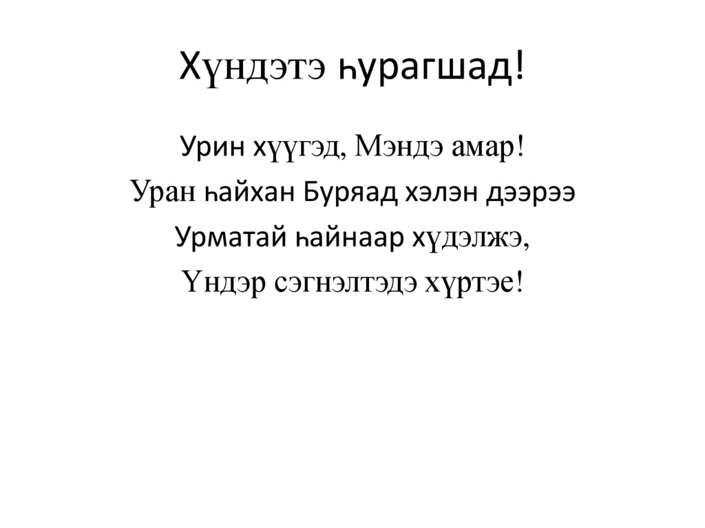 Хүндэтэ һурагшад!Урин хүүгэд, Мэндэ амар!