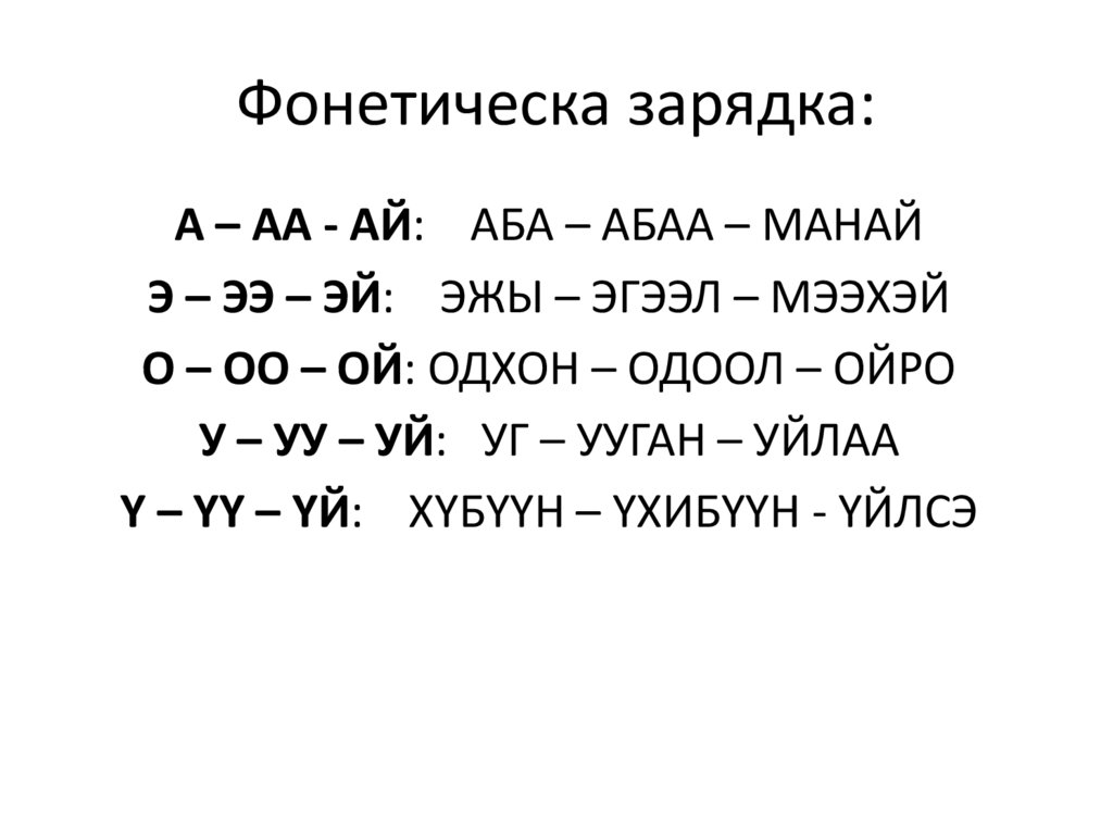 Фонетическа зарядка:А – АА - АЙ: АБА – АБАА – МАНАЙ
