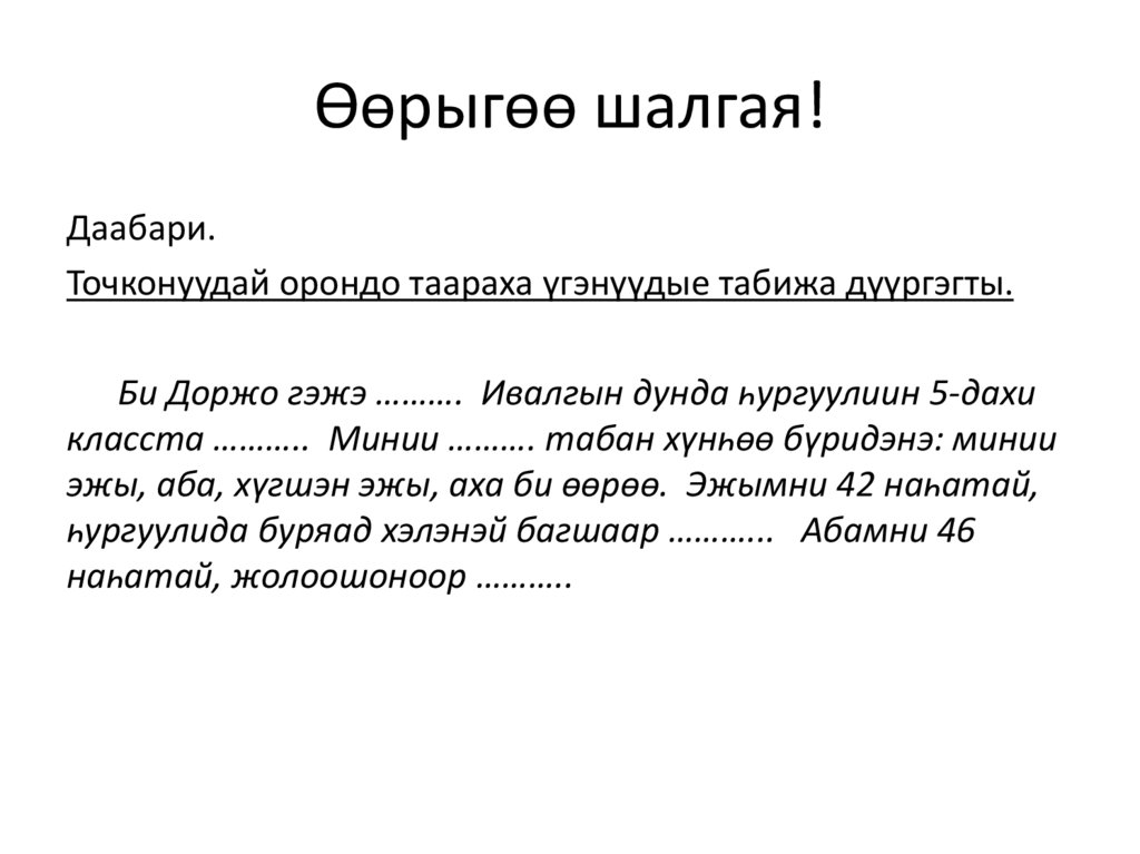 Өөрыгөө шалгая!Даабари.
