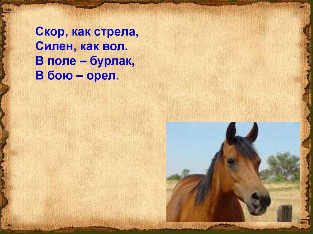 Скор, как стрела,Силен, как вол.
