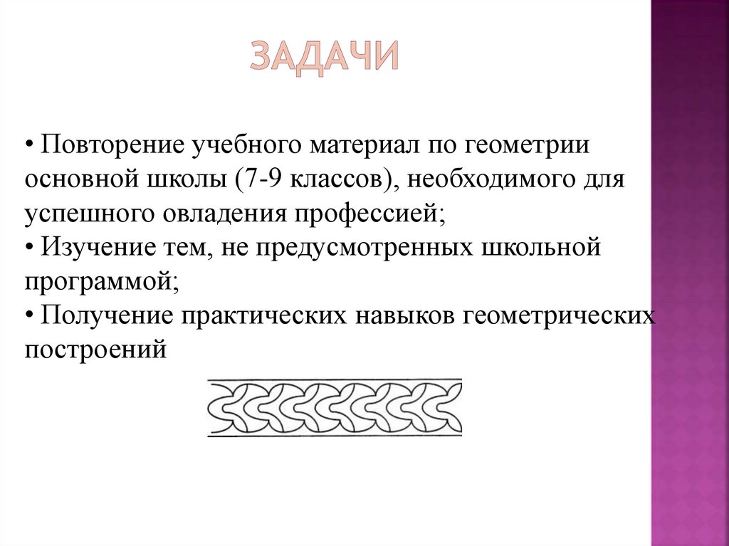 • Повторение учебного материал по геометрииосновной школы (7-9 классов), необходимого для