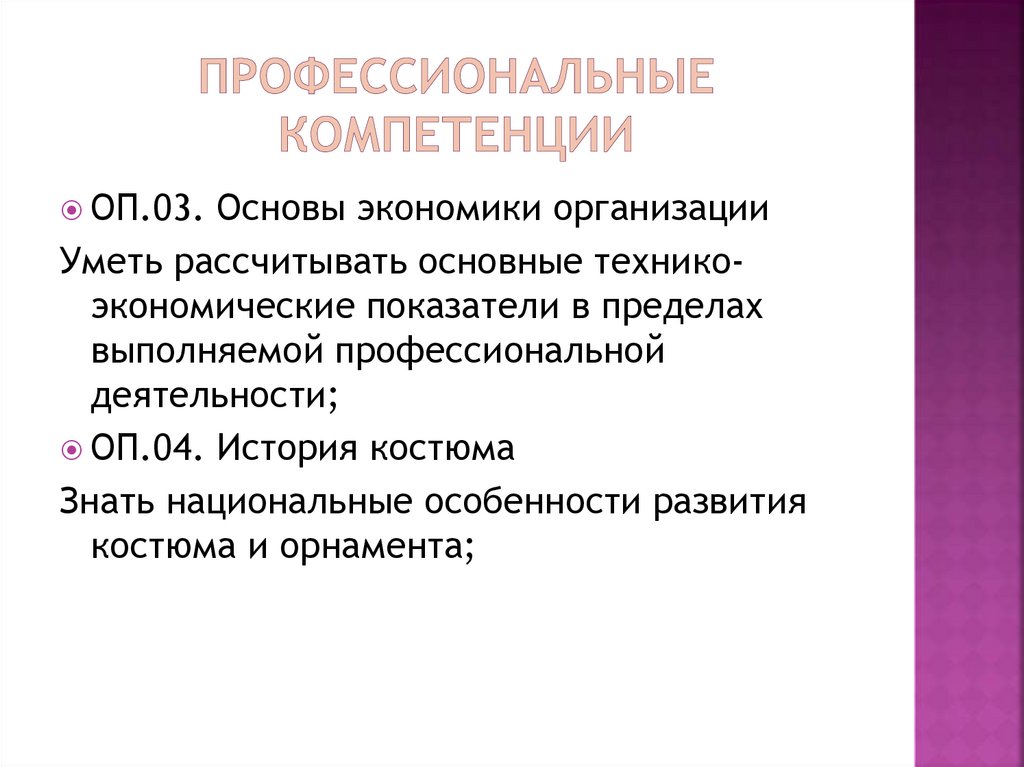 Уметь рассчитывать основные техникоэкономические показатели в пределах