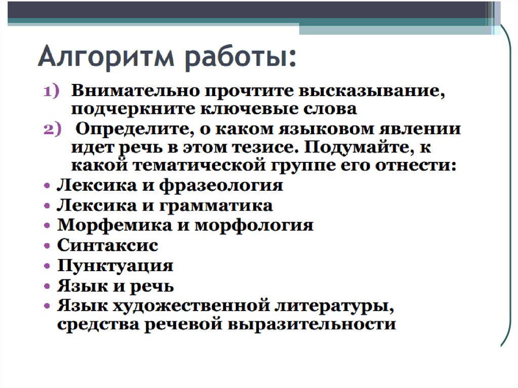 Алгоритм работы над сочинением на лингвистическую тему