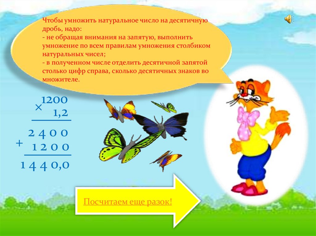 Чтобы умножить натуральное число на десятичнуюдробь, надо: